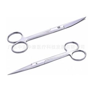 Surgical scissors, stainless steel, straight tip, curved tip, ophthalmic scissors handle